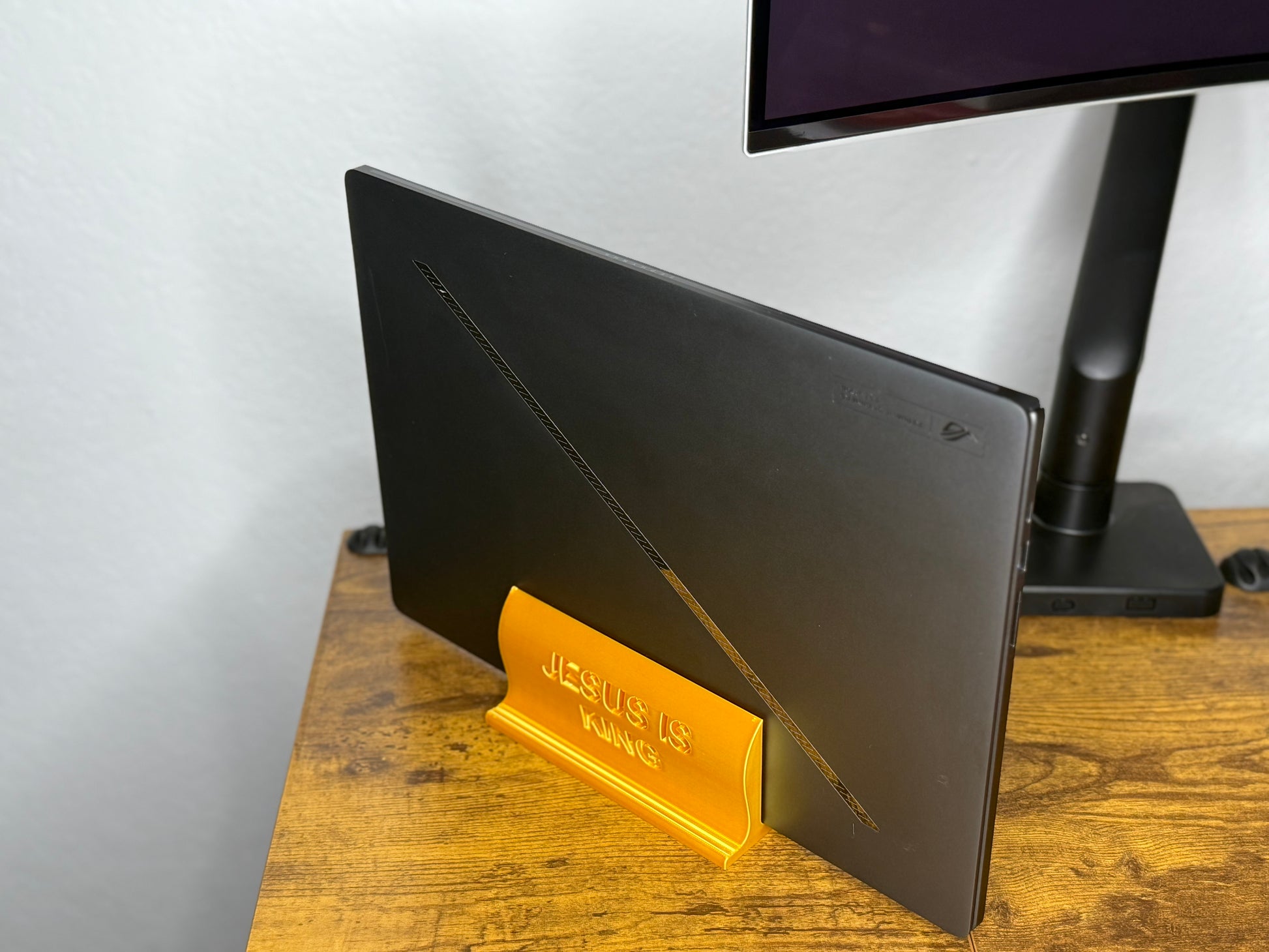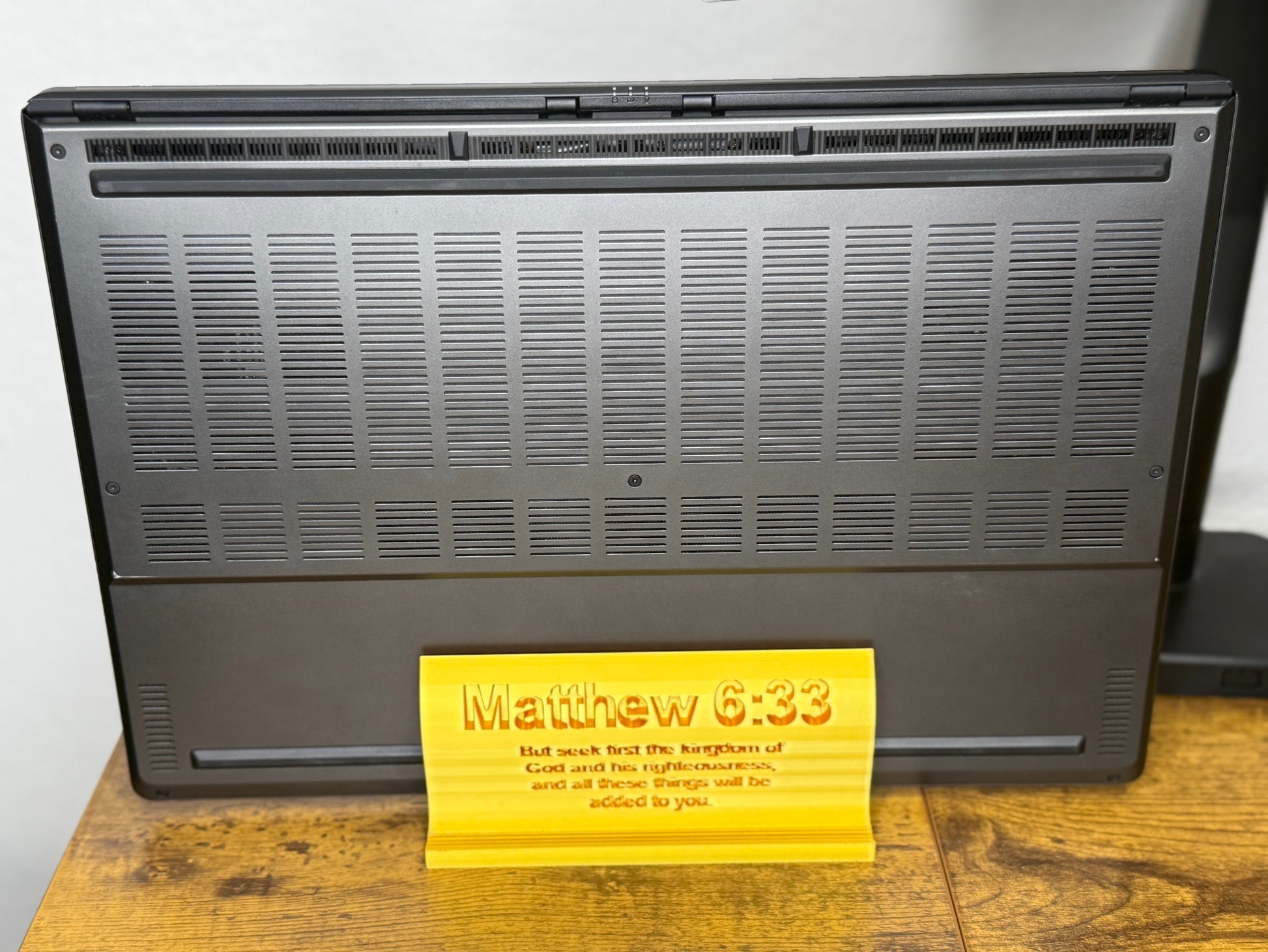 With a customizable width to fit any laptop brand or size — including larger models like the ASUS G16 — The Anchor Holder keeps your device cooler, helping extend its life while giving you a more comfortable and ergonomic viewing angle. A subtle verse engraving adds a faith-inspired detail, blending spiritual encouragement with modern design.